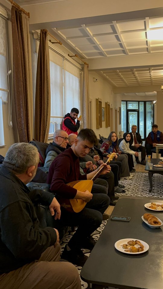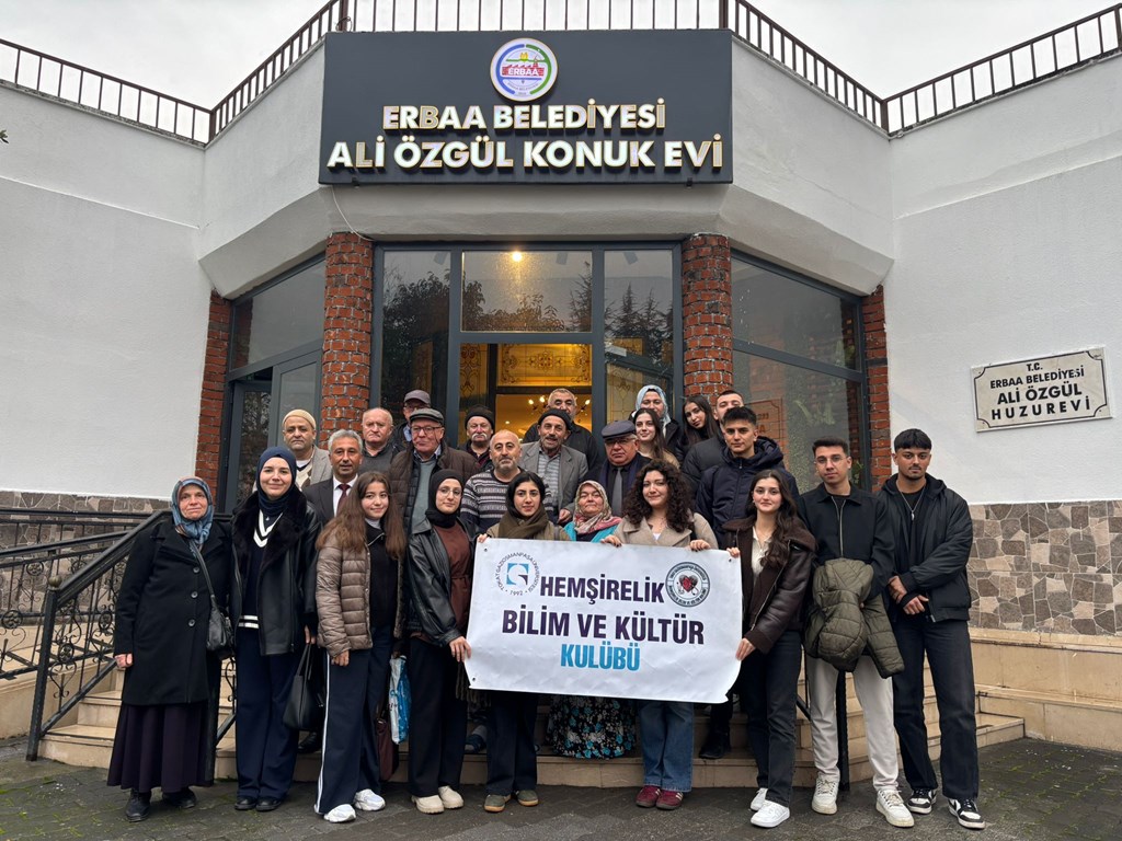 Hemşirelik Bilim ve Kültür Kulübü, kulüp danışmanı Arş. Gör. Yasemin SAPCI CAN kordinatörlüğünde 27 Aralık 2025 tarihinde Ali Özgül Konuk Evi’nde misafir edilen büyüklerimizi ziyaret etti. Ziyaret kapsamında konuk evinde kalan büyüklerimizle sohbet edildi, saz eşliğinde eğlenildi, öğrencilerimiz tarafından tansiyon ölçümleri yapıldı ve küçük hediyelerle gönülleri alındı.Büyüklerimizin duası, tebessümü ve anlattıkları ziyaretimizin en kıymetli kazanımı oldu.